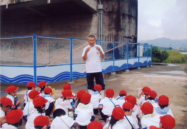 和歌山市立楠見小学校1年生3クラス 目的:干潟の生物多様性を理解する・自然に親しむ 紀ノ川河口干潟 干潟の生き物観察と採集 2005年7月5日 シオマネキ・ハクセンシマネキ・トビハゼ・アシハラガニ・チゴガニ・ヤマトオサガニ ハマガニ・ケフサイソガニ・クロベンケイガニ など