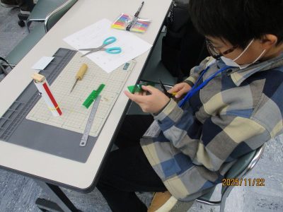 B組 科学工作教室「メカイモムシを作って動かそう」